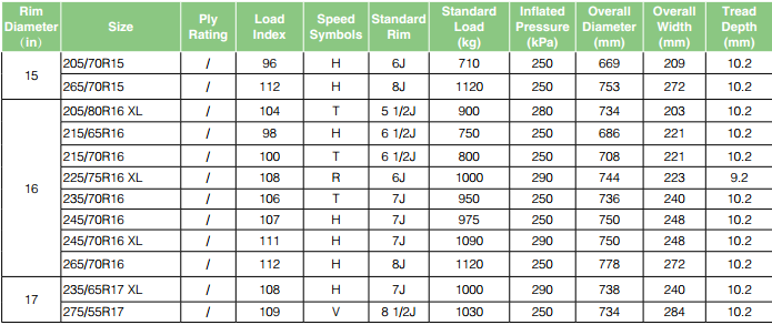 | Specifications | Load Index | Speed Symbol |