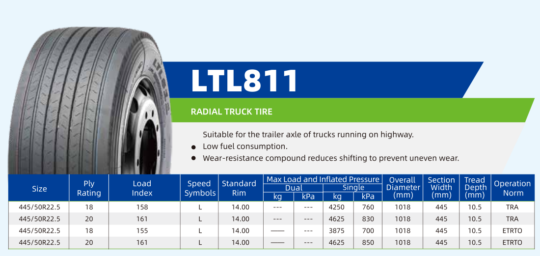 | Specifications | Load Index | Speed Symbol | Standard hub | Standard load | Corresponding pressure (kPa) | Inflatable section width (mm) | External diameter (mm) | Depth of pattern (mm) |